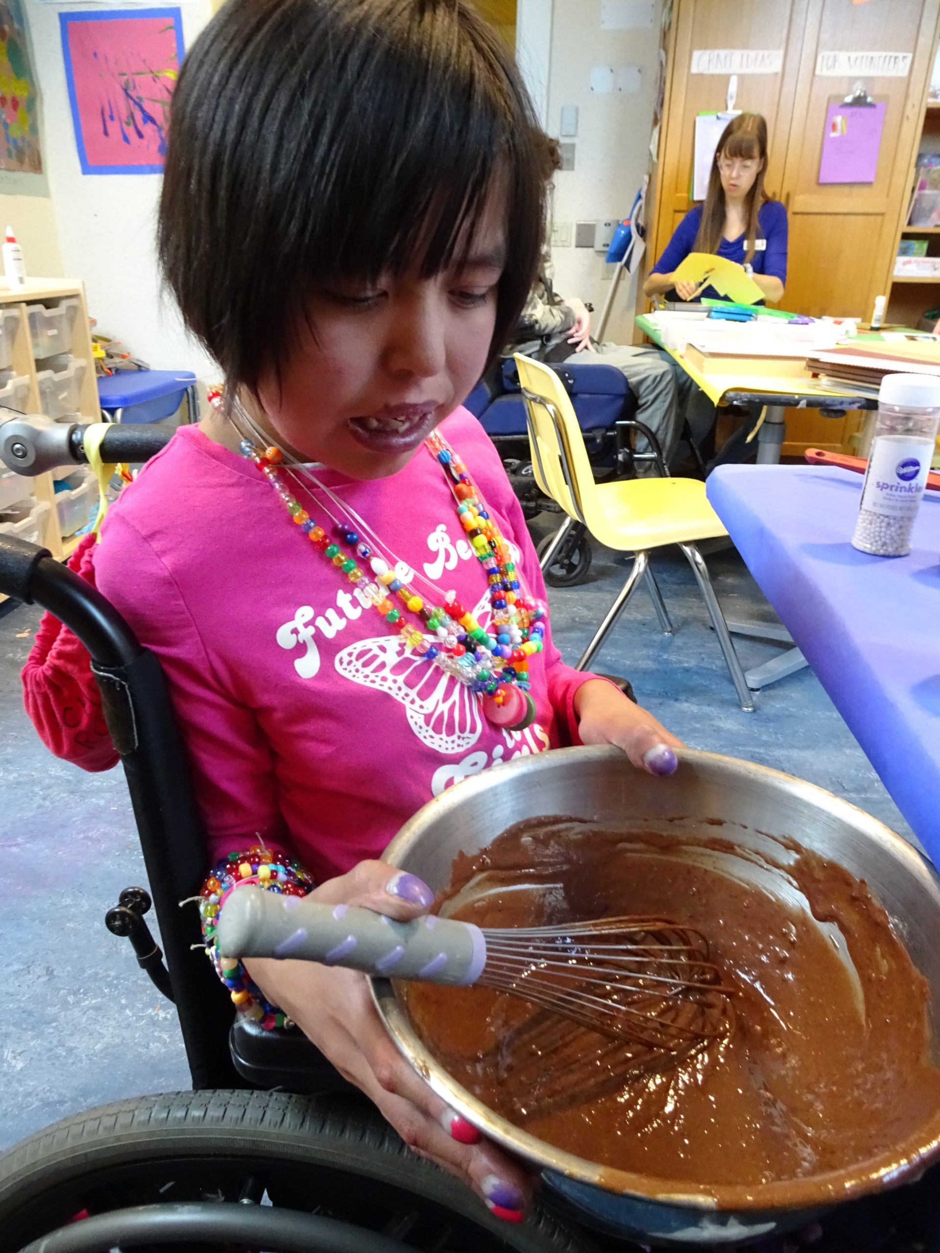 We love to bake every Friday and we use adapted equipment so that all the children are part of the process.