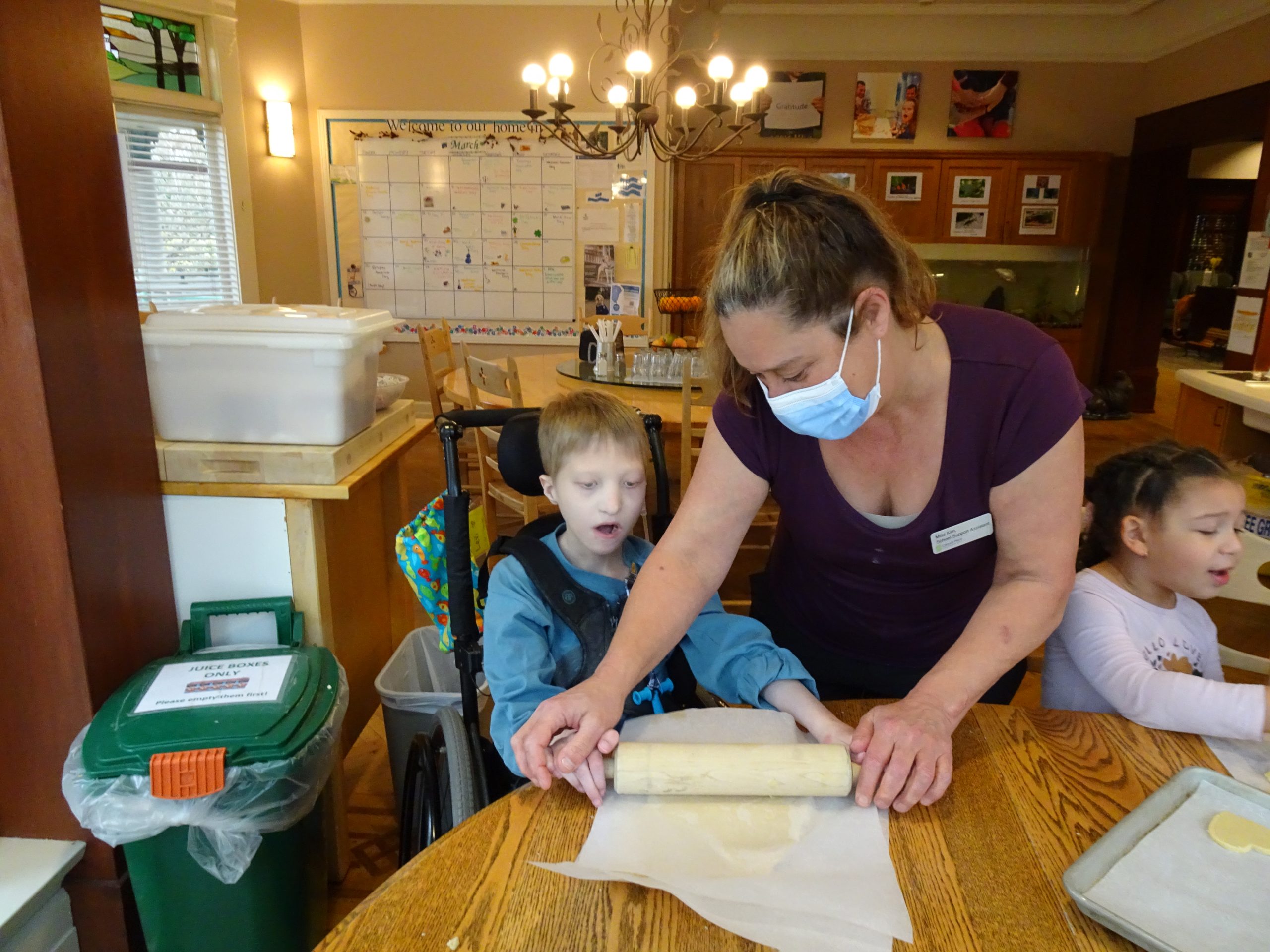 Everyone staying at Canuck Place Vancouver – Glen Brae Manor, can attend school, both children on the program and their siblings. We support the children with work they may have brought with them or with grade appropriate work, often based on our themes and their interests.