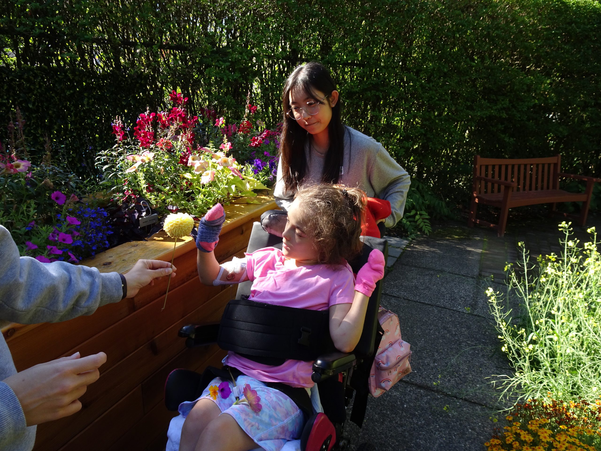 Of course, we couldn’t do any of this without the help of our fabulous volunteers! We have lots of regular volunteers in the school room. We are able to set them up with activities with the kids and this allows us to give the children the time and individual attention they deserve. We also do a lot of training with them around interacting in the most positive and beneficial ways with our non-verbal children. They are fabulous! – Kay Lever, Canuck Place Teacher