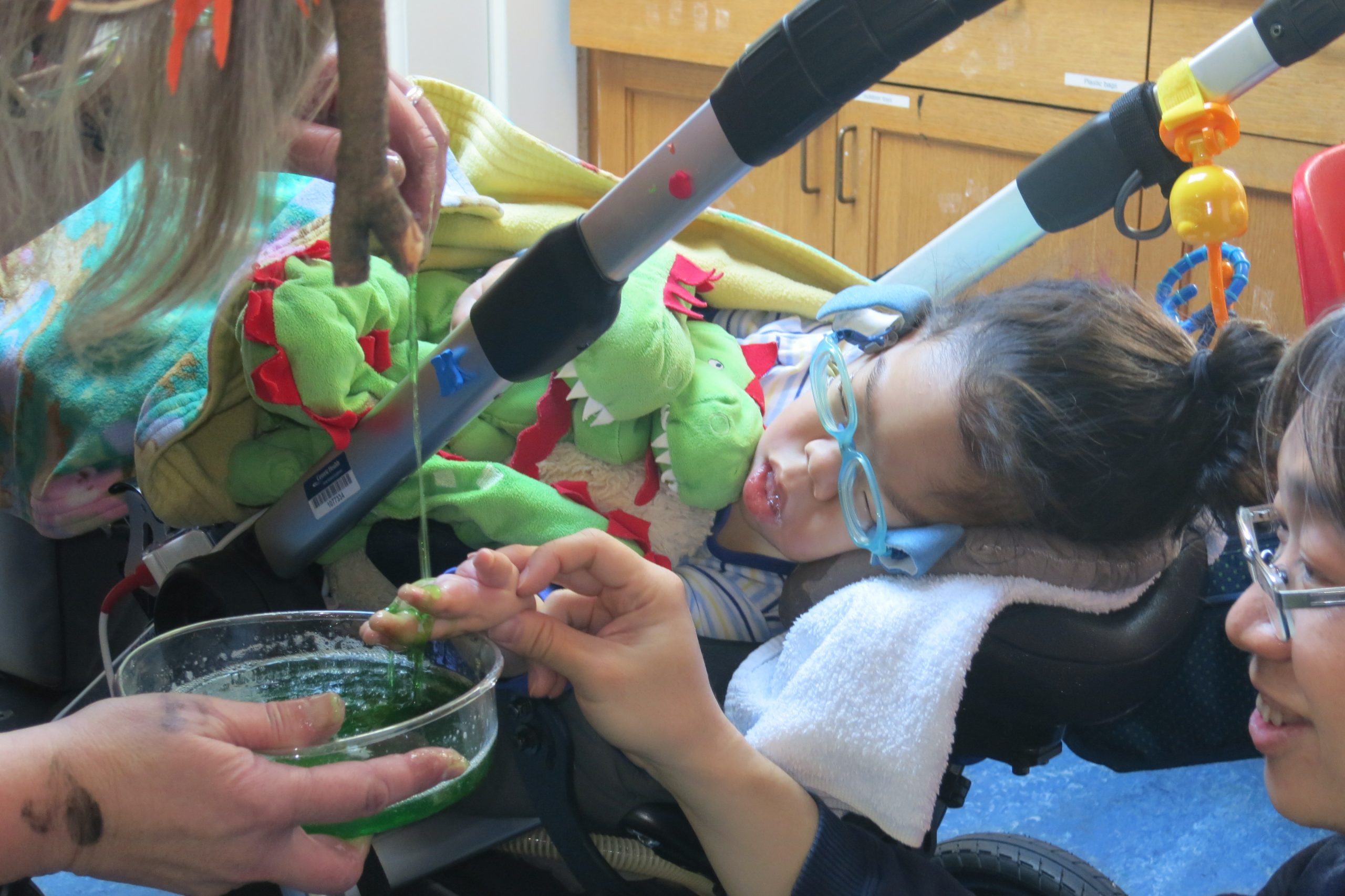 We love science experiments (the messier the better!) and create art work in every way imaginable! We paint with cars, loofahs, switch operated dinosaurs, bubble wrap, and enjoy making scented playdough, gloop and slime. Sensory play is very important to a lot of our children.